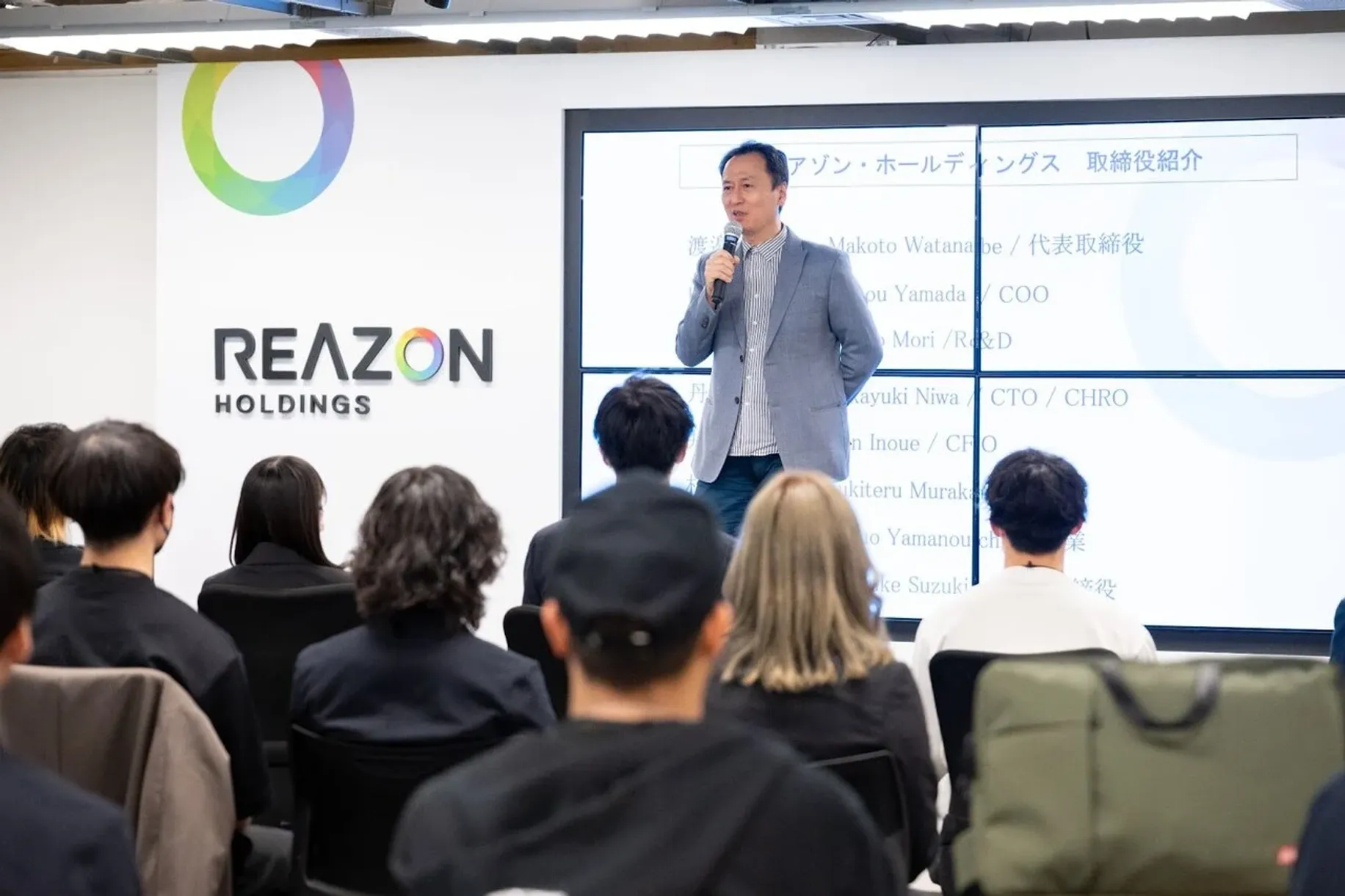 レアゾン・ホールディングス代表取締役を始めとする取締役の方々が参加され、お祝いのお言葉をいただきました。